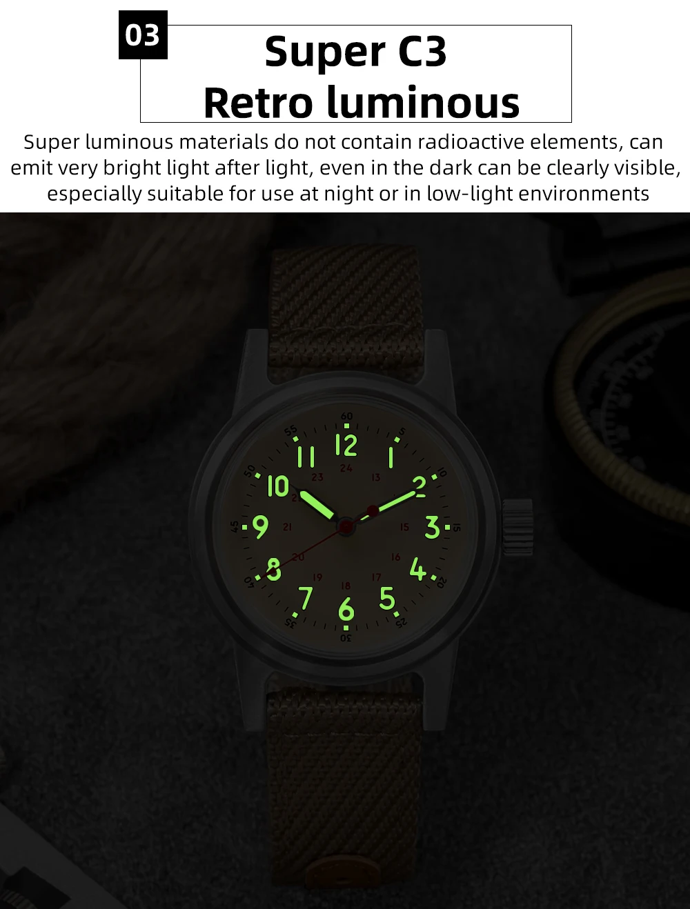 Dial luminescence: C3 vintage super luminescent powder yellow-green light