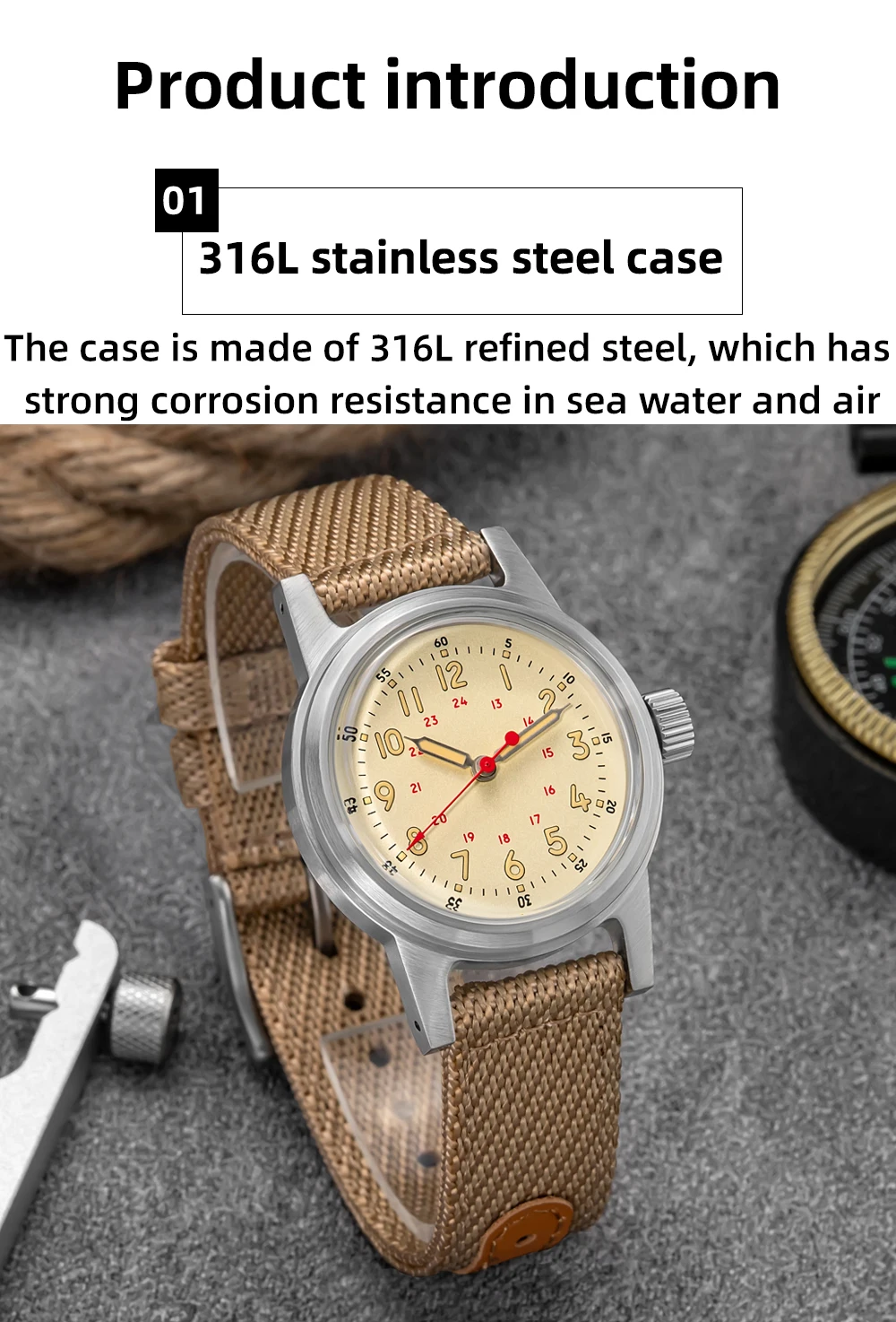 Case material: 316L stainless steel