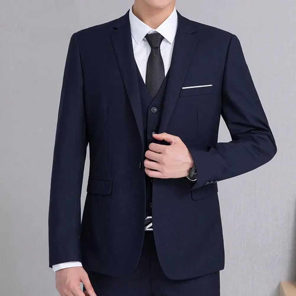 Men Formal Blazer Single Button Lapel Suit Jacket Solid Color Business Blazer for Daily Wear Date Parties Weddings