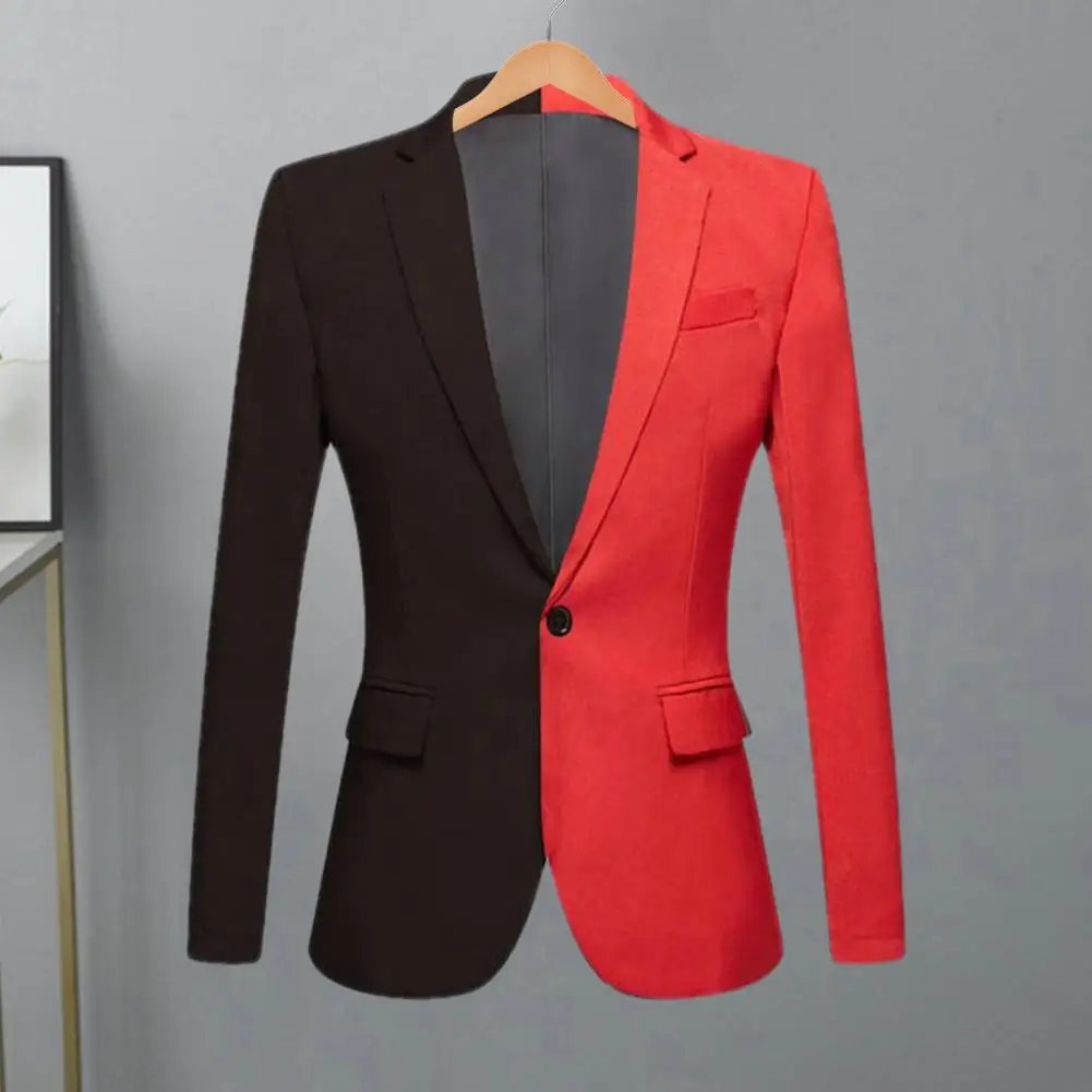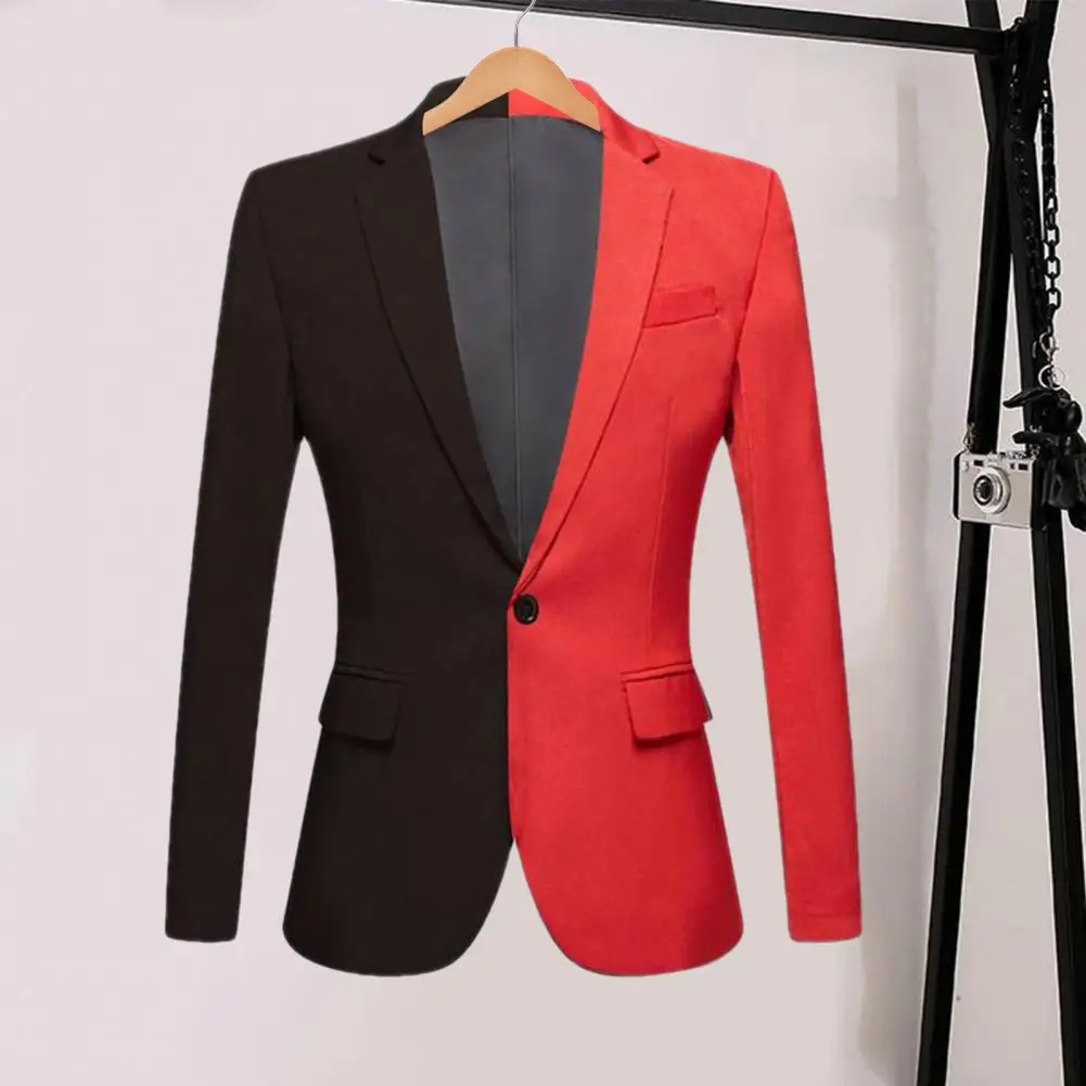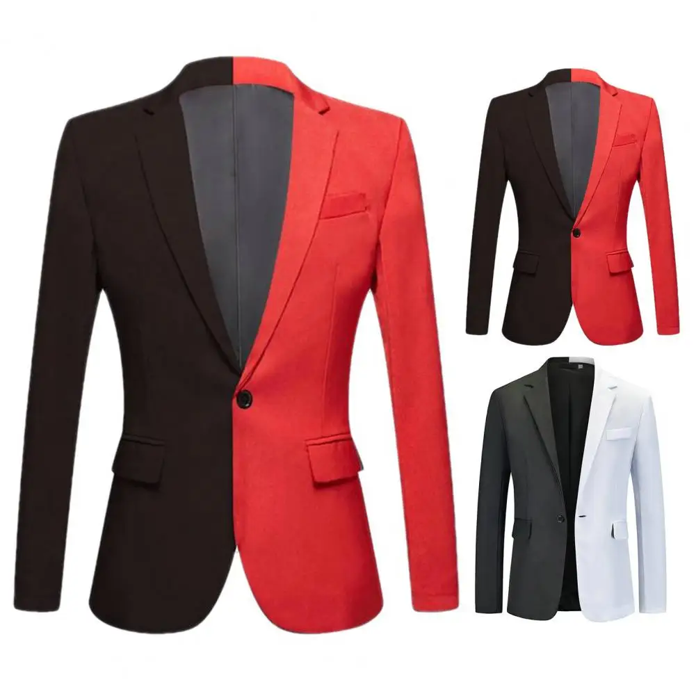 Men Spring Autumn Patchwork Contrast Color Suit Coat Lapel Long Sleeve Flap Pockets Single Button Slim Fit Suit Jacket