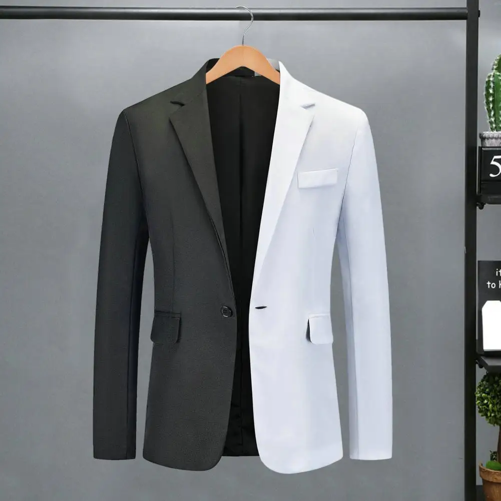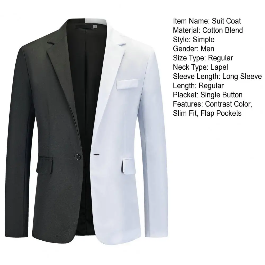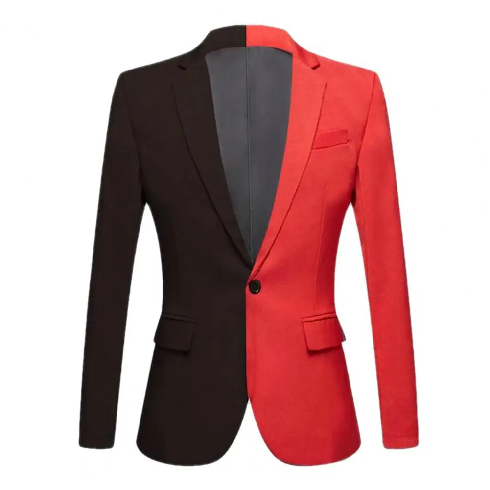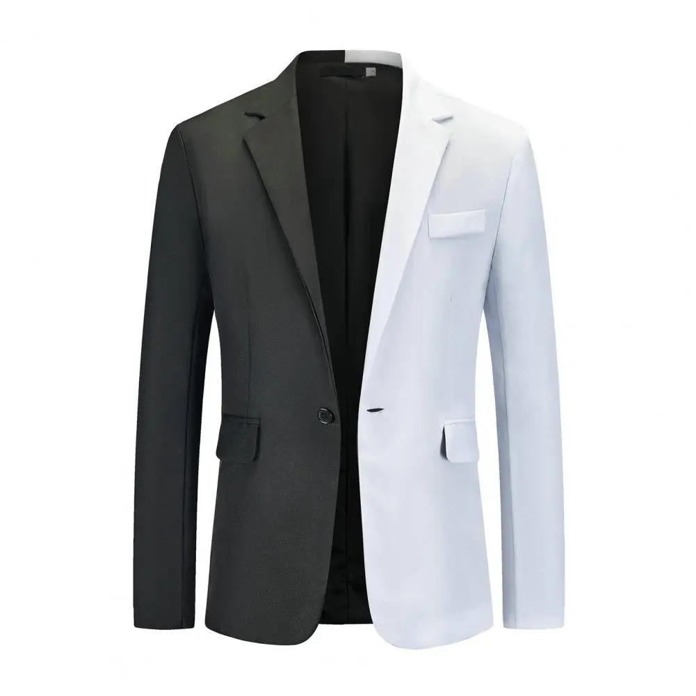 Men Spring Autumn Patchwork Contrast Color Suit Coat Lapel Long Sleeve Flap Pockets Single Button Slim Fit Suit Jacket
